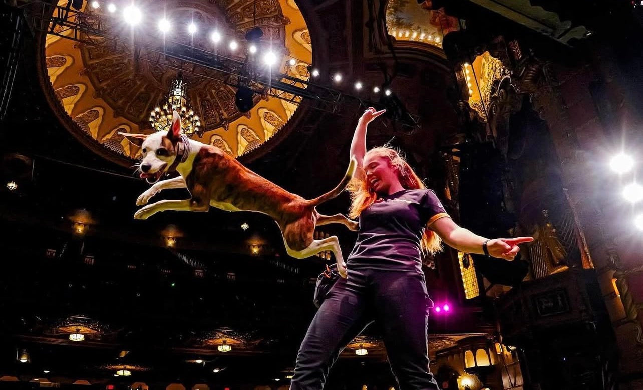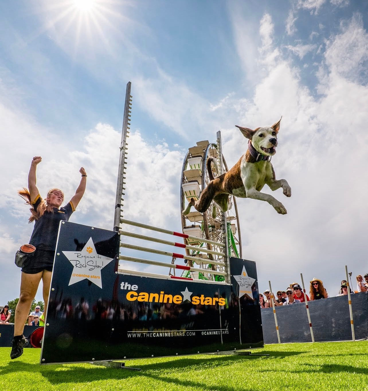 Dua Lipa was rescued from the streets of Raleigh, North Carolina at just nine months old. On the long trip to her new home, she barked and howled nonstop—until the hit pop song by Dua Lipa came on the radio, instantly calming her down and earning her name. Today, she’s a true star of the Canine Stars Stunt Dog Show, known for dancing, dock diving, and lighting up the crowd wherever she performs.